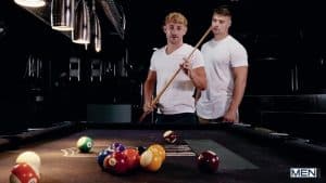 Men says: Big muscle dude Malik Delgaty’s huge uncut dick barebacking curly ripped stud Jackson Cooks It’s the first time that coworkers Jackson Cooks and Malik Delgaty have been hanging out outside of work, and as they play some darts, Jackson uses the opportunity to get close to Malik as much as he’s able to. Malik is looking at the shorter guy’s genitals while Jackson breaks the pool table. However, Jackson cannot resist the urge to touch Malik’s genitals, which can make his next shot a mess. Malik decides that Jackson requires a lesson. He teaches him on the table and flips him over to punch him in the face. Jackson wants more, getting to all fours for Malik to rough him up on the green felt, before bouncing on that big cock until he cumming. Malik informs Jackson they’re not finished yet. He gives him every inch of his back, before cumming on Jackson’s face.